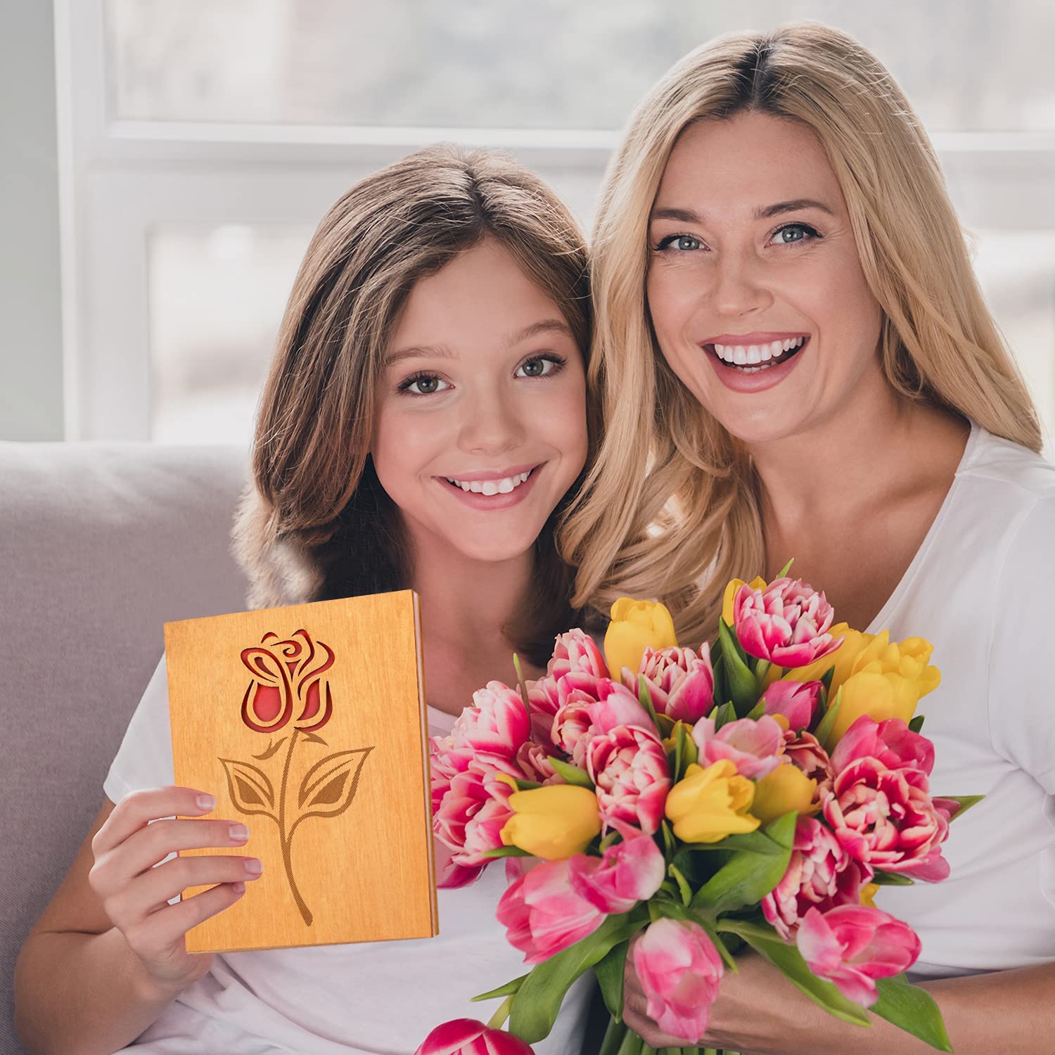 3D Grußkarte aus Holz mit Umschlag Rose - Glückwunschkarte Geschenkkarte