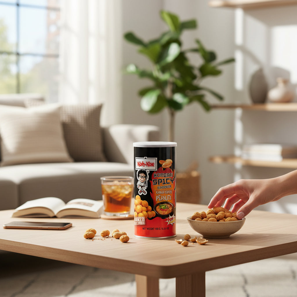 Die Koh-Kae Erdnüsse Korean Spicy Chicken verbinden knackige Erdnüsse mit dem beliebten koreanischen Spicy-Chicken-Flavour. Würzig, leicht scharf und intensiv im Geschmack – ein perfekter Snack für alle, die asiatische Aromen und herzhaften Knabbergenuss lieben.
